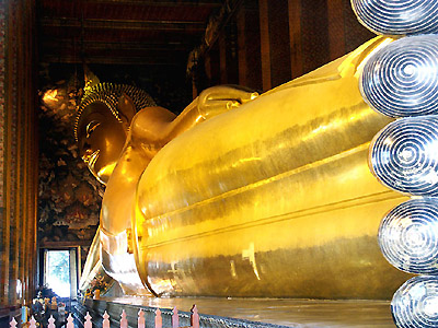 The massive gold-plated Reclining Buddha statue is 46m long and 15m high.