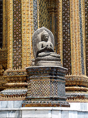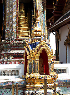 This is one of many stupas found in the Grand Palace. Nothing is painted - each colored piece is either
