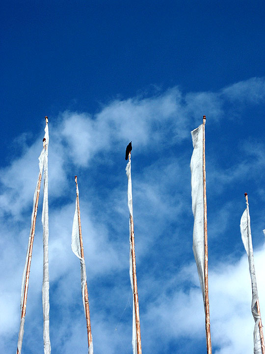 Lone Crow And Prayer Flags