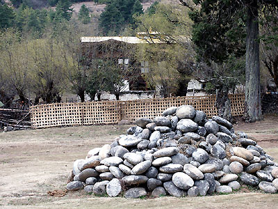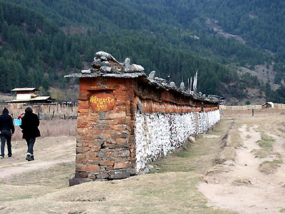 This beautifully painted wall is full of rocks inscripted with the Om Mani Padme Hung mantra.