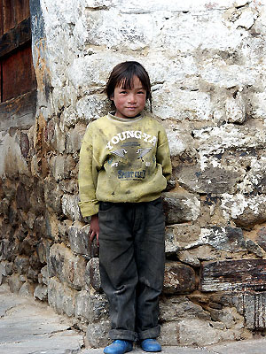 A little girl with dirty clothes comes by to check out the Buddhist tourists.
