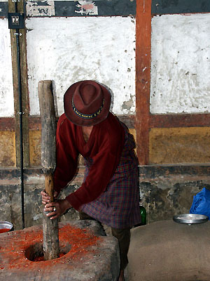 and when you walk in, you are greeted by a man grinding chili pepper into powder using a large