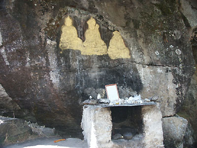 The little items on the altar are known as tsa-tsas, statues made from the remains