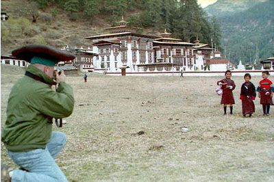 Here I am taking the picture of the schookids. That's a meditation pillow on my head - needed
