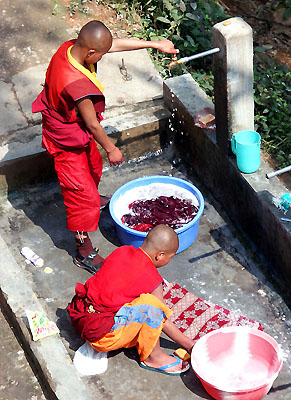 The day was Sunday, and most of the monks had the day off, but these two monks had laundry duty.
