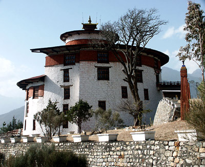 is one of the rare round fortresses in Bhutan. The top section that