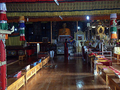 Wide angle shot of the main temple hall at Sonada. The temple was recently remodeled, and
