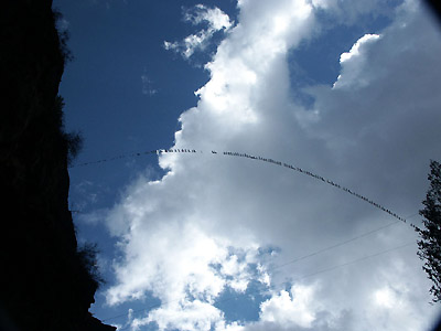 Looking at the string of prayer flags from the trail below.