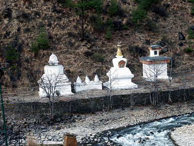 While passing over a river, we came upon this small shrine area that contained chortens/stupas in three