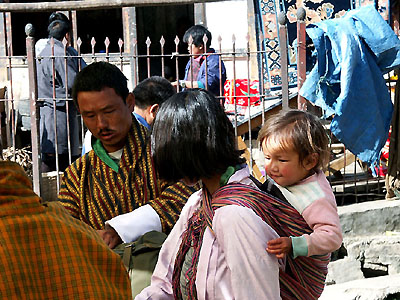 One of the creative uses of yathras is to make a baby papoose, a common sight in Bhutan.