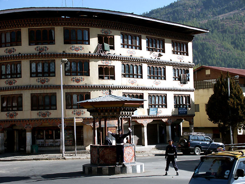 Traffic Cops at the Main Traffic Circle In Thmphu