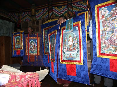 by Tang Rinpoche to bless several thankgas that were purchased on the trip.