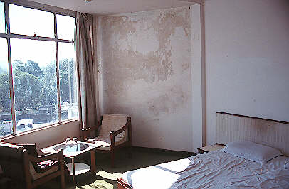 I slept in some major ratholes in my Himalayan journey, and my hotel in room at the Hotel Ganges Kinares felt like a 5 star hotel, but still it wouldn't exactly make AAA ratings in the west. The place needed a paint job, the headboard was greasy, and the bathroom was a sight to behold, but it still, for India, I would recommend the place. Rooms on the other side of the hall have river views.