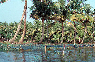 This piece of waterway is actually a prawn/shrimp farm. The netting is lowered to keep in the shrimp.