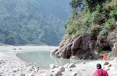 women and myself to the second Vasishta cave just above where he is standing. It is quite an idyllic spot, and even