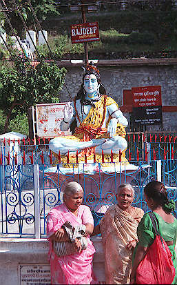 On the eastern side of Lakshamjhula stands one of many statues of Lord Shiva. The painted statue is