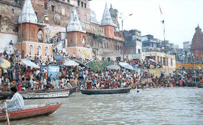 The chaos was at its peak at the central ghat of Varanasi, the Dasaswamedh ghat. Dasaswamedh mean "ten horse sacrifice", a place where the Hindu Lord Brahma sacrificed 10 horses. This is normally a huge plaza and every square inch has been swallowed by the sea of humanity. I could not imagine what it would be like to be in that mass of people.
