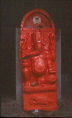 A small area in a sidestreet makes for a small Ganesh temple. Here's a small statue of Ganesh - notice the rat below him in the bottom of the statue -