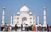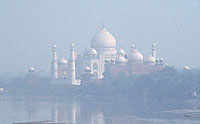 India Agra and the Taj Mahal, Nov 13Took off at 7:00AM to Agra, the site of the world famous Taj Mahal. Even the most experienced and jaded India travellers told me it is worth seeing, so taking a day for a visit was always in my plans. An Indian "Highway"The road to Agra from Delhi is for the most part a 4 lane "highway", and I use the term loosely. While Agra is only 120 miles from Delhi, it still takes 4 hours by car, and I found out why. The highway almost works like the concept of the highway here in the west, but the chaos consciousness that rules driving behavior in the city is also extant on the highway. Imagine driving down the highway and there's a tractor, or a motorscooter, or an ox-drawn cart going in the wrong direction in your lane. Happens all the time, now only at 50-70mph, the near-miss game that Indians can do so well. Let's face it, it would be wasting paint to put down lane markers, there is no concept of a lane in India. What's more, the road is in repair for about 25 percent of the mileage, so it end's up two lane roads with utter chaos, because you add the lorry/truck factor in, belching out diesel smoke right into your open window. So getting to Agra was rough, and I was feeling a bit raw, since I couldn't sleep much the night before (having slept so much previously). The Taj Mahal