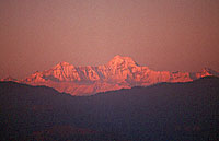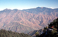Night time presents us with a magnificent view of the city of Dehra Dun 6000 feet below, and also showing the sharp rise of the mountainside upon which Mussourie rests. I go back to my room, and as I am opening up my door on this great outdoor verandah, I look to the veranda across the way, and see a woman come out of a dark room to look at me. It was so weird, and when I got into my room, I said,"wha? could that have been...? Nah...whoa!". I got a real shiver down my back: could that have been the ghost or a real woman? I'll never know but at that point it was really capping off a bad day. The hotel at night really showed off it's old, run-down qualities, and I was expecting Morticia, Gomez and Lurch to show up any minute.