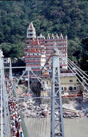 On the way back we pass a pack/family of monkeys and I stop to take some photos. They are inquisitive, major moochers, and pickpockets if you are not looking, but basically a little shy of people. Cute as hell too. LakshmanJhulaThe next stop was LaksmanJhula, the bridge