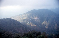 I picked a small vendor, a young boy selling little potato-like pancakes and vegetables. So I stood at a wall eating this lunch, which was great, with many people passing by, some saying hello, some coming up and shaking my hand, asking me where I am from and trying their English on me, which apparently gives them a real kick that they can communicate effectively with me. Across the way, a sadhu that I saw at Nilkanth, with matted hair and saffron robes, sat down at a vendor booth across the lane with another older sadhu. Recognizing that we saw each other at Nilkanth, we smiled at each other. Kunjapuri Mountaintop Durga Temple