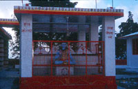 An analogy is this: all of existence, every point in physical or subtle space has a certain 'voltage', but what we see as differences in things, physical objects, emotions, thoughts, ideas, are differences in amplitude and frequency. Higher 'vibes' have higher frequencies, more evil vibes have lower frequencies, etc. We really can't 'feel' the voltage, because everything about us is at that voltage - we swim in it, the voltage of existence. But real effective Gurus and places like Nilkanth up the voltage to 220 or 440 and more, bringing a force that intensifies existence and promotes real spiritual revelation and realization. It can really make a difference. It is concentrated Existence, capital E, a "divine" portal. So it makes me happy to find a place like Nilkanth, though it is a real bumpy ride to get there. And I don't know if it will stay that way if it gets more popular or whatever, and certainly it may have been just a right moment for me (and as they say, your mileage may vary if you get a chance to go there). But if you are ever in Uttar Pradesh, India, I most certainly recommend you go there. After I left the temple, I walked around the area, feeling fortunate to have found this place, and I purchased a few items to remember Nilkanth, a mala and a cheap little cobra ring that I still wear. I also got lost going back to the taxi, walking into an area where women were bathing, another major oops! And when I found the taxi, nearly in tears, I said to Kuku, "wow, maha shakti!". And he retorted with a thick Hindi accent," Yase, verrrri oli!".