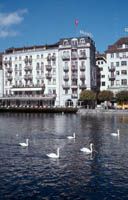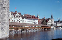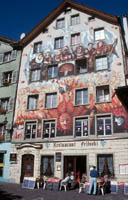Switzerland Monday, October 12...Anyway, Anne and I arrive in Frankfurt and I got stopped by customs to inspect my carry-on back pack. The customs agent started rattling off German to me and I went "wha?". I did study German in high school and can speak and understand simple German sentences, but full conversations leave me dumbfounded. There's a real helpless feeling not knowing the language of the country you are in, which reminds me of that Docker's commercial where the American guy is having a cafe outside of the Eiffel tower. He eyes a beautiful french woman (in reality an American model), and she walks over and says, "buon pantalon". He feverishly searches through his dictionary for what she said. Just then the stereotypical rude french waiter comes along and smacks him on the head with his cleaning towel, and gruffly says, "Ey, she said nice pents." I feel a lot like that guy, especially when it comes to food items, which basically comes in two types, pork and beef. Rahm, brat, wurst, it's all getting clear to me eventually. But I have carried on a couple of small conversations in German, and I feel so proud of that little accomplishment. But if I start a conversation in German, people then assume that I am proficient and start talking in conversational speed. However, my mind has to translate word by word, since it's been 26 years since I studied German, and that is way too slow to process a normal conversation. But surprisingly it is coming back to me, it's a fun challenge. For the most part, Anne and I walk around town here in Lucerne saying,"where can we buy a clue?" It's is really a helpless feeling. Anyway, back to the customs agent, who looks through my backpack and we start talking to him. He's sort of apologizing for hassling me, and he asks us if we're carrying any illegal cigarettes. So Anne picks up and says, "oh no, we're from California, no one does cigarettes there." And the customs agent fires back, "California, eh, that's the place with all the dope!". Ah yes, California's most famous export, besides Hollywood and computer stuff. We both burst out laughing and he let us go. Speaking of cigarettes, I've been to Europe several times and it is truly remarkable the difference in cigarette use between America and Europe, and especially California. I'm told Asia is the same way. Walking into the Frankfurt terminal, we were besieged by a white cloud of eye-burning, putrid odors from cigarettes, reminding us that Dorothy, this isn't Kansas. So we picked up a car, being bumped up to an Audi station wagon for the price of a compact. Rental cars are very cheap in Germany now, for some reason, don't know why, but I ain't complaining. So by some miracle, we made in onto the correct highway to Switzerland, the famous Autobahn, which actually is a generic term for highway in Germany, most big highways apparently are Autobahns. And it is true about no speed limits. For the first hour I was intimidated from going in the fast lane -even though I would be averaging 140 km/hr, about 84 mph, I could see these maniacs out of my rear-view mirror approaching me and then passing me like I was standing still. (Note: George Carlin says anyone who drives faster than you is a maniac, and anyone who drives slower than you is a jerk). So after a couple of hours, Anne falls asleep, and I get a rush of testosterone. So the next Mercedes Benz yahoo that passes by me, I pull my Audi station wagon behind him in the fast lane, and I peg that bad boy to the floor. 150, 160, 170, 180, 190 kph. Doing the math, that's 115 mph. But hey, it's a rental car! And I know that driving 115 mph after not sleeping for a night on unfamiliar roads that are wet from last night's rain is really fucking stupid and adolescent, but how many times will I be on the Autobahn with an unconscious wife who won't tell me that I'm scaring her and slow down godammit? This is my big chance to show how truly a reckless adolescent I can be at times. At 115, things go by really, really fast and it actually can make one alert very quickly. I notice how my zone of safety kept going up after getting familiar with each 10 kph jump in speed. You can drive very fast, and the mind can be very still but focused, like it has gone over some edge of fear into a stillness. At 0 or 115 the mind is the same, and it may be easier to see the nature of mind at 115. But kids, don't try this at home. But in any case, I've graduated, I'm proud to say I am one of those Autobahn maniacs who may pass you like a speeding bullet. Fahrtvergnugen. Yeehah.