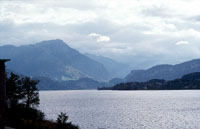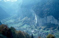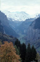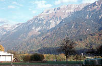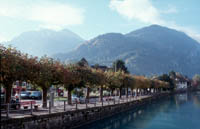 Having wasted about three hours already, it was our fateful decision to take Freddie's advice and have this place look at our Audi. Freddie gave me directions to the garage which were very complicated, but I managed to understand, and we drove to the place, and the car stalled in an intersection on the way. It managed to start up right away and we drove to the Audi garage. The proprietor, one Rudi Ecker, spoke as much English as Freddie with the same Swiss accent, and I finally figured out that telephone call was "ruhe" in German, so I asked to use the phone, and the local rental agency told me the same story as what Freddie said, but that I should call the main office in Frankfurt Germany so that they can call the Zurich office so that they can send a tow truck to us and we could ride back to Zurich and get another car. Yeah, right. So while I'm trying to start the car, checking under the hood for something wrong and Anne manning the telephone that Rudi was kind enough to let us use, in walks the next set of players, Gunther the tall, good looking Swiss Air pilot and his brother, looking to buy a used car. After about a half hour, Rudi asks Gunther if he speaks English, which he replied yes, and then asked him what kind of problem these two American bozos were having with the car. So Rudi has one of his mechanics come look at our care, with all sorts of electronic testing machinery. Gunther comes outside and we strike up a conversation. We talk for awhile about his vacation in California during the height of El Nino, and he makes the off the cuff comment that these Audi's have really good diesel engines. Anne's eyes get real wide, and she asks, "Phil, what kind of gas did you put in the car?" Oh shit. As Buckminister Fuller once said, that a problem totally understood is one that is half solved, we had our solution. I felt like an idiot, but relieved that there was nothing innately wrong with this fine piece of German engineering. Gunther tells the mechanic the lowdown, and we figure out that he has to put out all the gas in the tank since I filled half the tank with the wrong petrol. So we all push the car in the garage, and as my wife slowly starts developing a crush on the handsome Gunther, we converse about diesel engines. Usually there is a signature "ping" to diesel engines in the trucks in the US, which of course you hear _outside_ of the truck. Unfortunately, I never heard my engine from the outside - remember this is a finely built piece of German machinery, and it's quiet as hell on the inside. Moreover, every diesel car I've ever been in, in the US, has a sign on the dashboard, such as "Use only diesel fuel". Gunther asks me to look at the inside of the gas tank door, and there's the sign! Yes, it is always my first choice to find out about the innate details of all my automobiles. Of course, this doesn't hide the fact that my assumption that this was a non-diesel auto was my fault, costing us six hour and the repair costs of sucking out all the gas from the car at the VAG Audi/VW Garage of Kusshnacht am Rigi. So as Gunther and his brother take leave of us, his brother neatly sums up the whole situation with his Swiss accent: "Shit heppens" So Anne and I spend time in their auto showroom, reading all sorts of magazines, such as GQ in German, with real naked girls, quite unlike the US version. Now here's where it gets real scary - I asked Rudi to use the toilet, and he points me to the door. I'm fully expecting the usual greasy pig sty that is so common of most US truck stop, repair garage and service station bathroom, but _this_ bathroom was cleaner than our bathroom at home. This is not right. My world is being rocked here. Of course, the Swiss, and Germanic folks in general, are renowned for their cleanliness, and this was no exception. I've been looking for dirty place for this whole trip, like under the bed in our hotel room, or in the corners of the room. Clean. No dust. No grime. Wow. You see people cleaning their sidewalks all the time here - we even saw one guy sandblasting his concrete wall today, and I certainly appreciate cleanliness. As long as it doesn't get to the Jerry Seinfeld/NY Jewish male neurotic stereotype, it's great. We Americans could take on the Swiss attention to detail. Like this morning for breakfast. Our breakfast tray included a tiny little red garbage pail with wheels and a lid, so we can dispose of our jam packets and milk containers. It was such a cool little toy I wanted to steal it. Anyway, we finally took off for Interlaaken at 5pm instead of noon due to our little adventure, but it wasn't a loss as much as it could have been -we met some very, very considerate Swiss citizens along the way who helped us instinctively, and the weather was cloudy for most of the day. And as soon as we started to drive to Interlaaken, (after, of course, stopping at the first gas station to fill up on DIESEL gas), the clouds broke and we were treated to a most incredible drive through high passes of the Bernese Oberland mountain range.