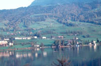 Anyway, I filled up half the tank not knowing it was wrong type of gasoline, and the next time we stopped the car to take photos, the car would not restart. Stuck halfway between Lucerne and Kussnacht am Rigi. So the nearest building was a distillery about a 100 yards away. Walked in to use the telephone and the two folks in the office spoke no English. Not only that, their Swiss accent was so strong that it was making my meager capacity for the German language more difficult. But as I spoke to one fellow Herr Freddie Mueller, I had no choice but to get down to some serious communication. Freddie made some calls for us to the car rental place, and the circus was now in full gear. The phone number on our invoice was incorrect, he got the new number and was told that the local office has no cars and the service guy was on lunch till 1:30, all this is in rambling German. He offered us to drive us to the nearest town, but since this is Switzerland, the nearest town was only 500 meters away and we walked to town to have lunch. After lunch in the Swiss Chalet restaurant, which has no relation to Motel 6-like Swiss Chalet hotel chain in the U.S. - it was a real Swiss Chalet - we went back to try the car and it started! So we drove to the distillery and told Freddie Mueller and his female sidekick that "mein auto springt an" (it started up!), but we'd wait for the repair truck, as we weren't sure what was wrong. Freddie told me in our new mode of communication that he seriously doubted that the service truck would ever show up, and that there was an Audi garage two km away.