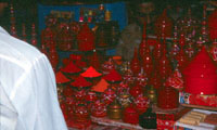Ajay, my guide asks if I would like to see some silk works, in that Varanasi is world famous for its silk. Being now a street-smart traveller, I ask Ajay what his commission is, and he lays it out in typical monotone, but honestly. So I said ok, let's go, a good opportunity to purchase some anniversary presents for my dear Annie at home. There was some really incredible stuff at this particular factory, prices were decent, but no big bargain, and I purchased some really nice scarves. And it got me thinking, hmmn, import-export of silks from Varanasi... Vandalay Industries! Then back to my room for a shower, nap and meditation to get ready for the night's activities. While sitting on the hotel Veranda, one of the hotel workers shows me the sign-in register, that a couple from Larkspur, a neighboring town from San Rafael. I knew exactly who these folks were from the previous night's talk from the Buddhist Lama - there's a signature "I'm rich, but I dress funky" look to Marinites. I tried to guess their vocations: massage person, therapist, author, tantric sex teacher, doctor, acupuncturist? But it still is nice to meet up with folks from the 'hood when you're traveling alone.