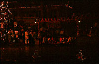 Returning to the Assi Ghat, the floor was laid out with candles in all sorts of formations, really beautiful light work, with an Om Namah Shivaya bhajan blasting over the loudspeaker. Damn, did I pick the right time to come to Varanasi!! What a party.